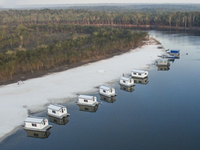 - Private occupancy 270 sq ft, air-conditioned mobile floating cabins featuring queen beds with daily maid & laundry service.
